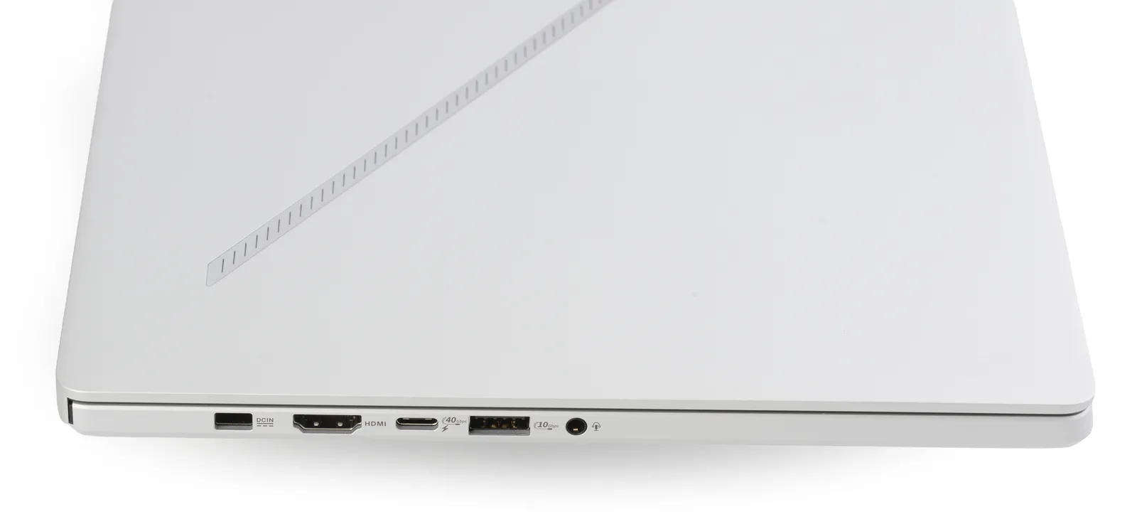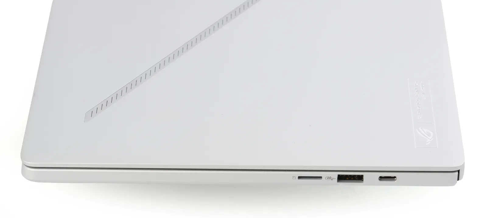 Connectique (droite) : lecteur de carte microSD (UHS-II), USB-A (10 Gb/s), USB-C (10 Gb/s, DP alt mode 2.1, PD 3.0)