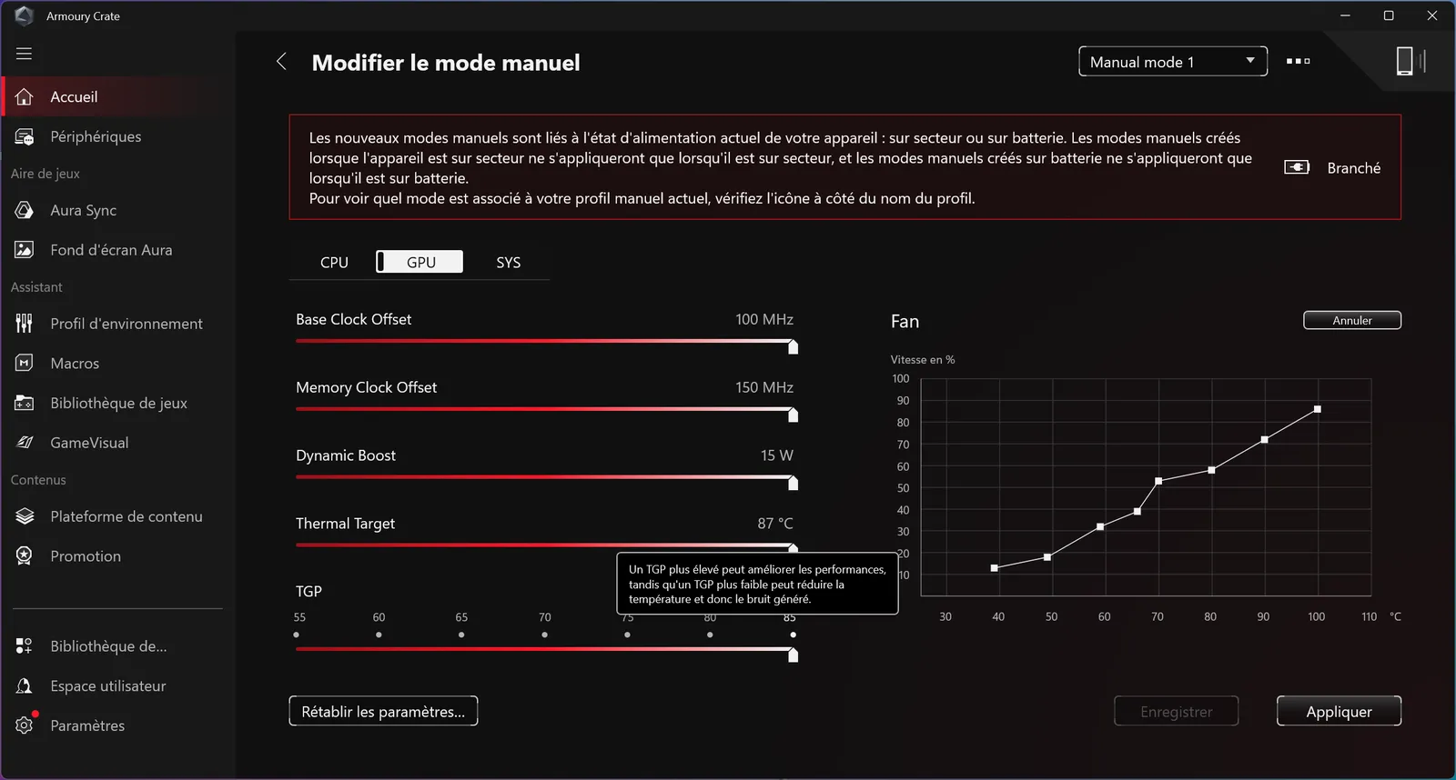 Carte graphique : Nvidia GeForce RTX 5070 Laptop 8 Go 90 W (75 W + 15 W Dynamic Boost)
