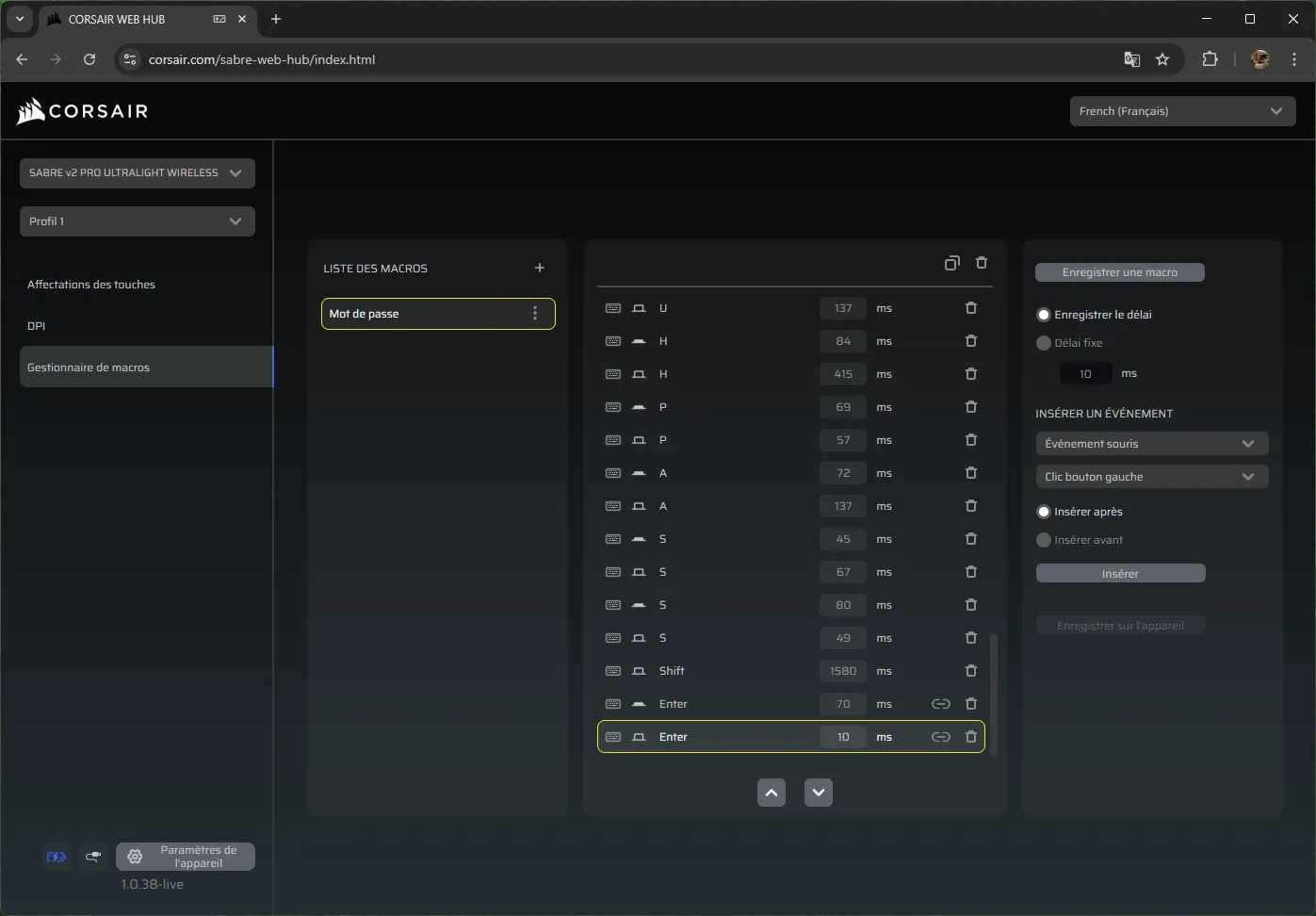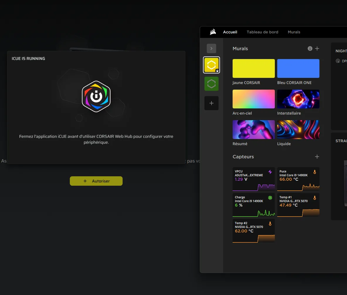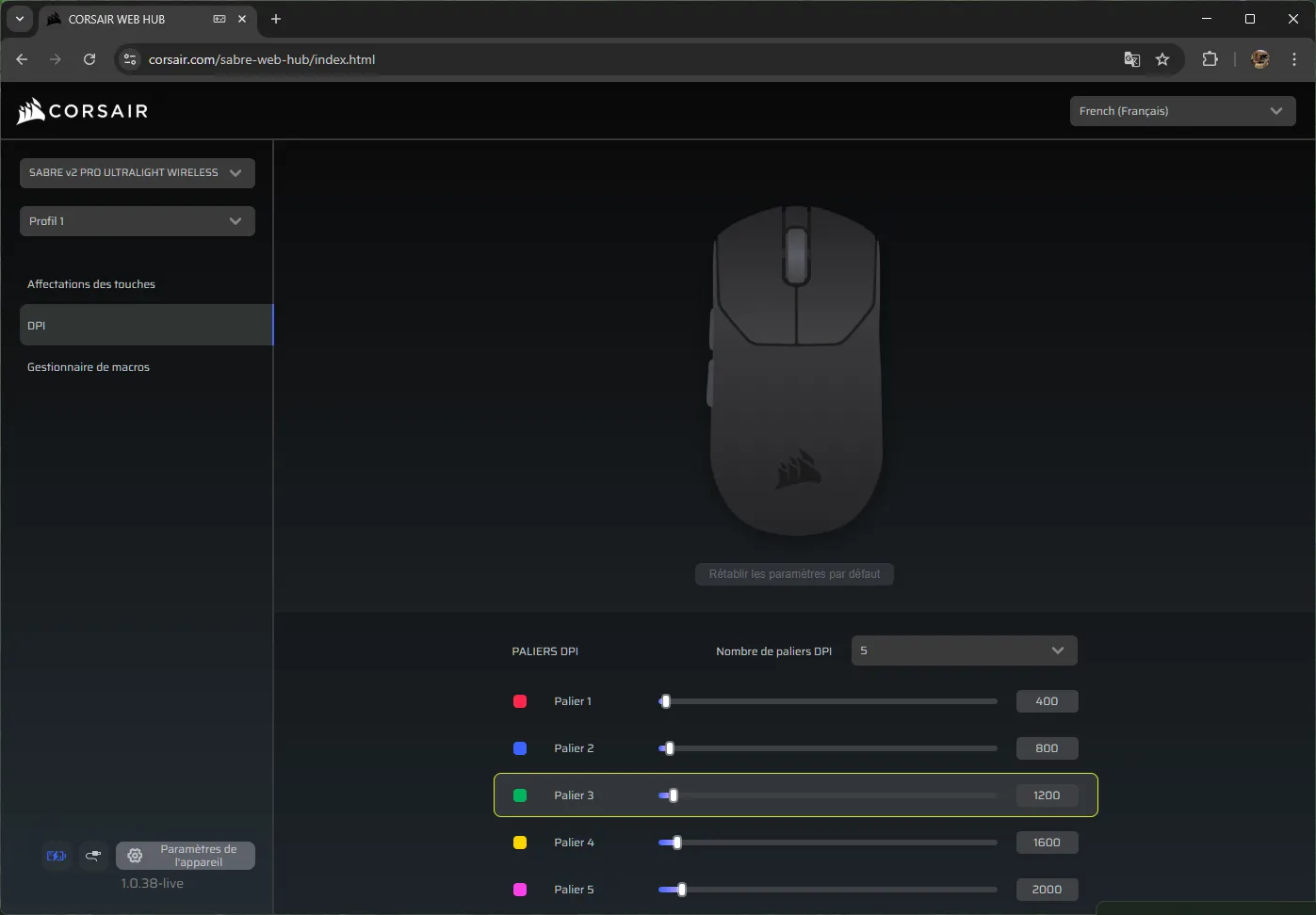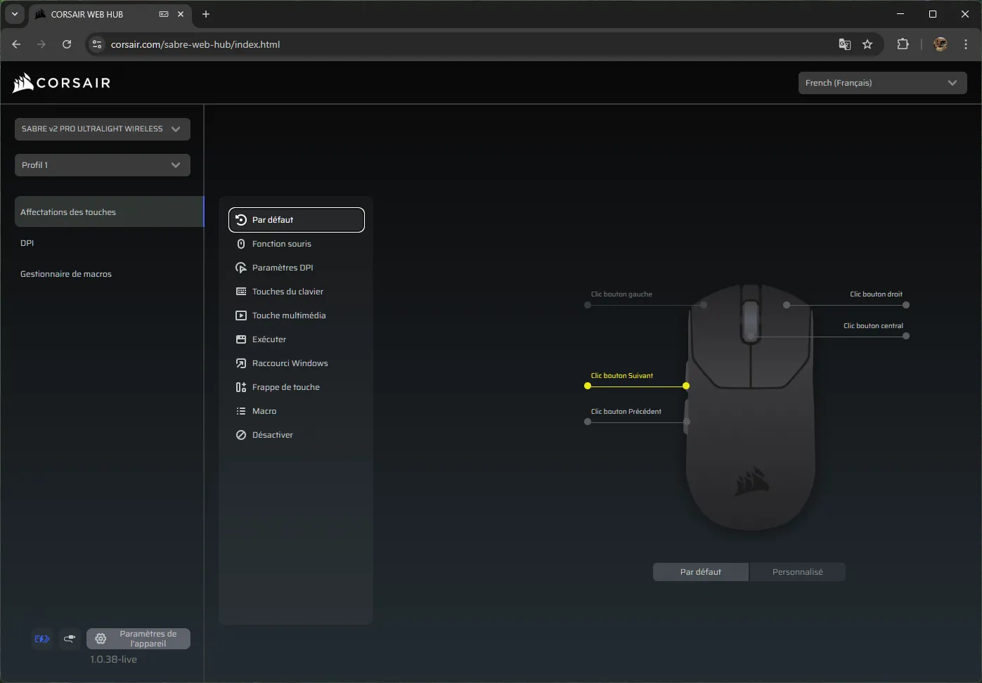 Logiciel : non, configuration sur Internet (Corsair WEB HUB)