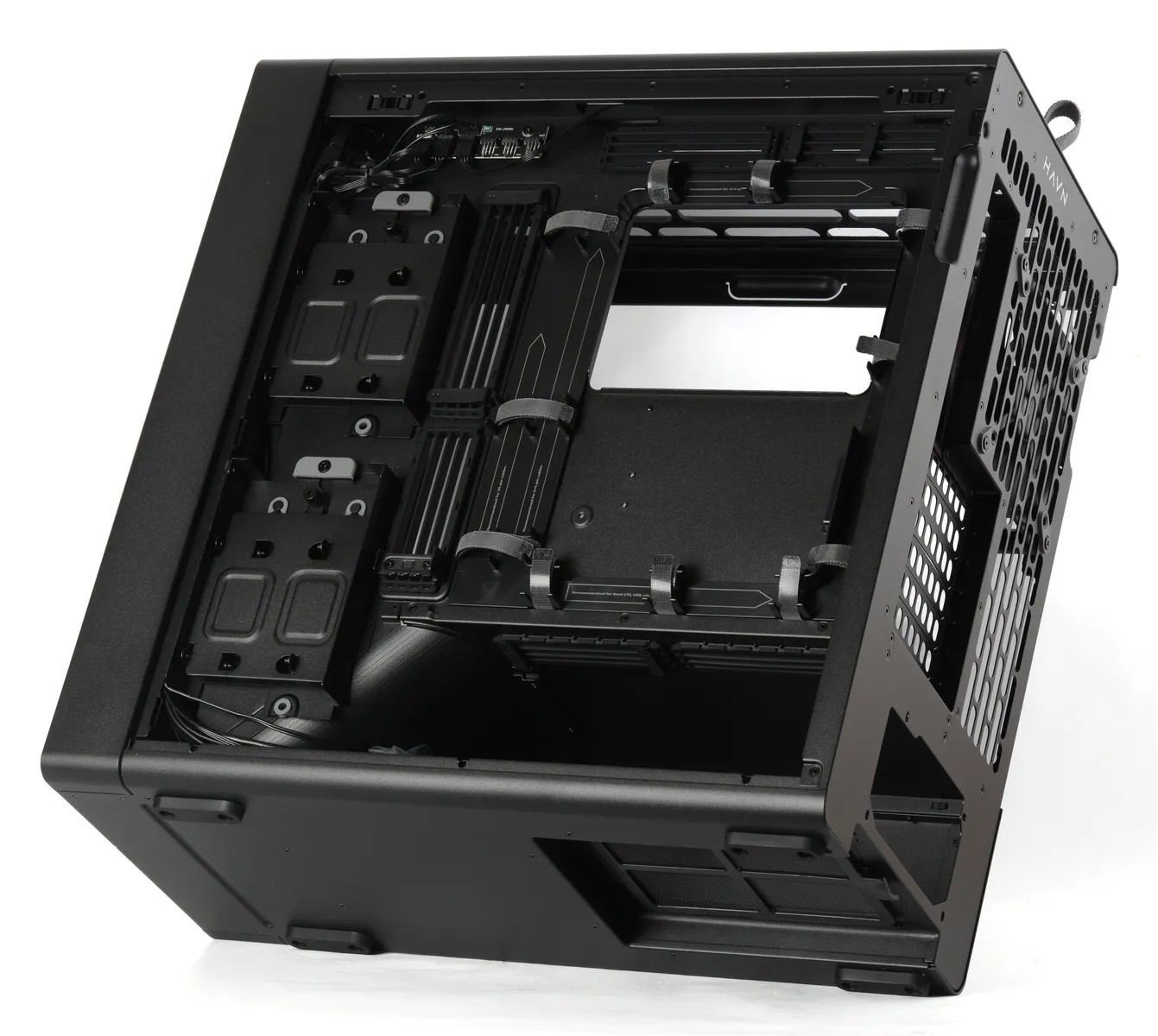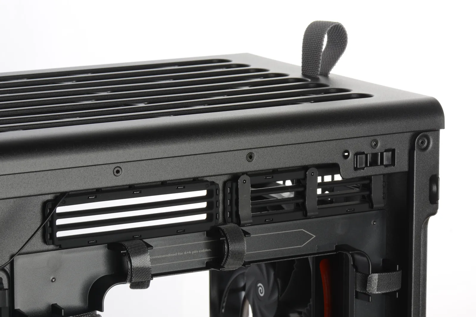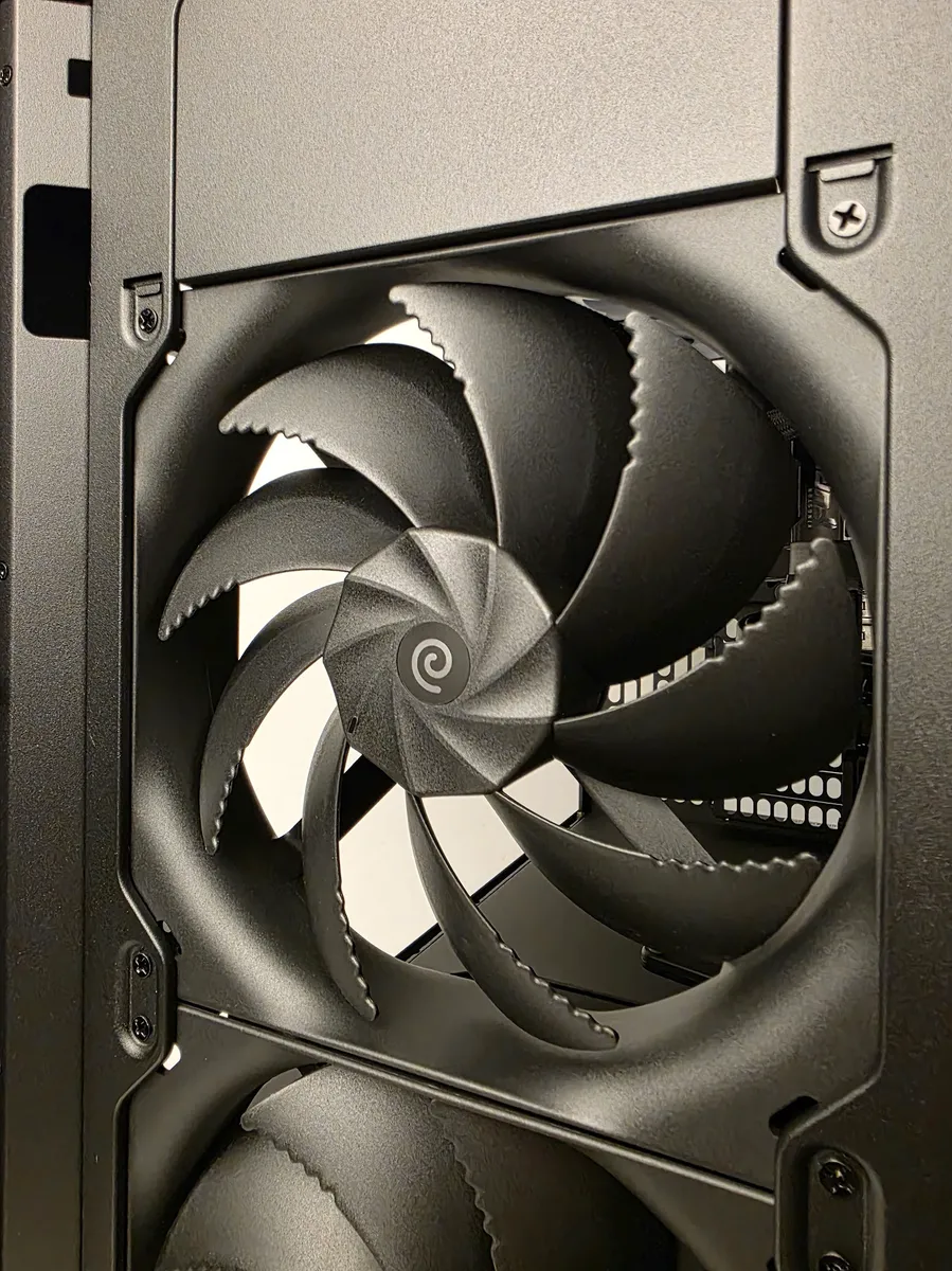 Emplacements pour ventilateurs : 2* 180 mm en façade, 3* 120 ou 2* 140 mm ou 2 * 180 mm en haut, 120/140 mm à l’arrière